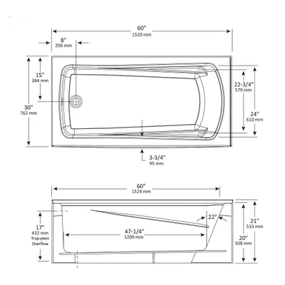 RUBY CANADA 60″ x 30″ Alcove apron bathtub