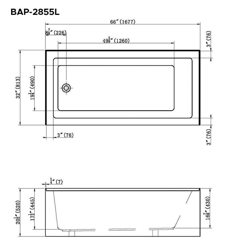 This 66″ x 32″ alcove bathtub is a must to optimize the space in your bathroom. Get comfortable for a relaxing bath thanks to its inclined backrest and 17-inch depth that will keep your whole body warm. This tub pairs particularly well with contemporary bathrooms due to the 20.5-inch high apron’s simple design as well as its rectangular shape. With the drain and overflow situated on the left side, it is made of fibreglass reinforced acrylic that ensures its longevity. A versatile option, you can easily transform this bathtub into a tub-shower by adding a bath door. Also, it features three pre-moulded tiling flanges for a simple and watertight bath wall installation. Simply add your favorite faucet from our selection to complete your bathtub