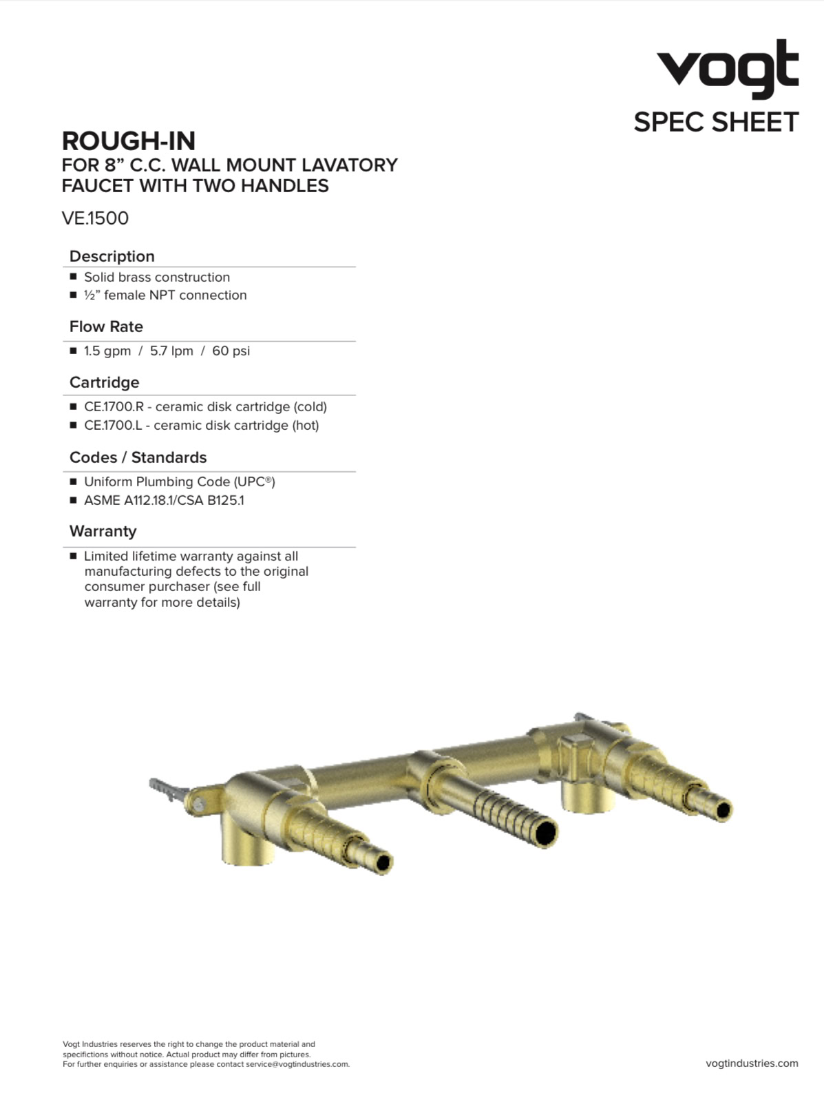 VOGT CANADA ROUGH – VE.1500ROUGH FOR 8″ C.C. LAVATORY FAUCET